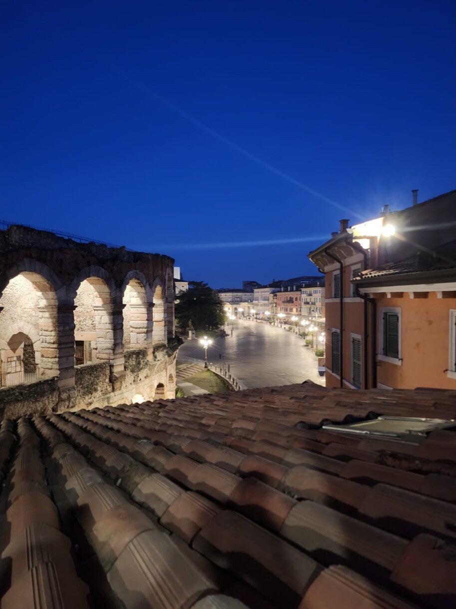 Il vero punto di forza della locazione è la vista diretta sull’Arena di Verona: una prospettiva ampia, nitida e senza ostacoli sull’anfiteatro romano, uno dei simboli più iconici della città.