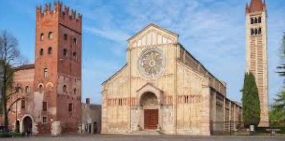 La Basilica di San Zeno, dedicata al patrono di Verona, è uno degli esempi più importanti di architettura romanica in Italia. Costruita tra l’VIII e il XII secolo, si distingue per la facciata scandita da arcate e per il grande portale bronzeo decorato con scene bibliche. All’interno custodisce capolavori come l’altare maggiore e il celebre Polittico di San Zeno, oltre a affreschi che raccontano la storia della città e della devozione locale. La basilica, circondata dal chiostro e dal verde del suo sagrato, offre un’atmosfera di raccoglimento e bellezza senza tempo. Visitare San Zeno significa entrare in contatto con la spiritualità e l’arte medievale che hanno segnato profondamente Verona.